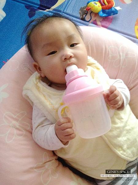 真的太神奇了..EE真的會喝耶.雖然也是會小小的嗆到.但是幾乎喝得很好耶..